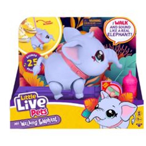 Tutvustame imearmsat Little Live Pets Sweet Safari kõndivat elevanti - Ellie! Ellie, sinu uus lemmik toob oma elutruude liigutuste ja helidega sinu koju metsiku looduse tunde. Üle 25 meeldiva heli ja reaktsiooniga Ellie elustab oma isikupära ja võlu. Suhtle Elliega, sööda teda ja mängige koos, seejärel lase tal sind põnevatele seiklustele viia! Elliel on ülipehme, priske nahk ja tema kere liigub graatsiliselt, kui ta ringi kõnnib. Toida Elliet tema piimapudeliga ja kuula, kuidas ta luristab! Lihtsalt koputades Ellie pepule, näed, kuidas ta rõõmsalt ringi kõnnib ja oma saba liigutab oma armsa väikese laulu saatel. Vajuta tema kaelarihma nuppu ja vaata, kuidas Ellie kere põnevusest vingerdab. Ole valmis lõpututeks lõbusateks seiklusteks koos Little Live Pets Sweet Safari kõndiva elevandiga - Ellie on valmis olema sinu uus parim sõber!