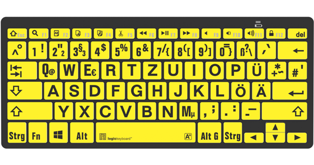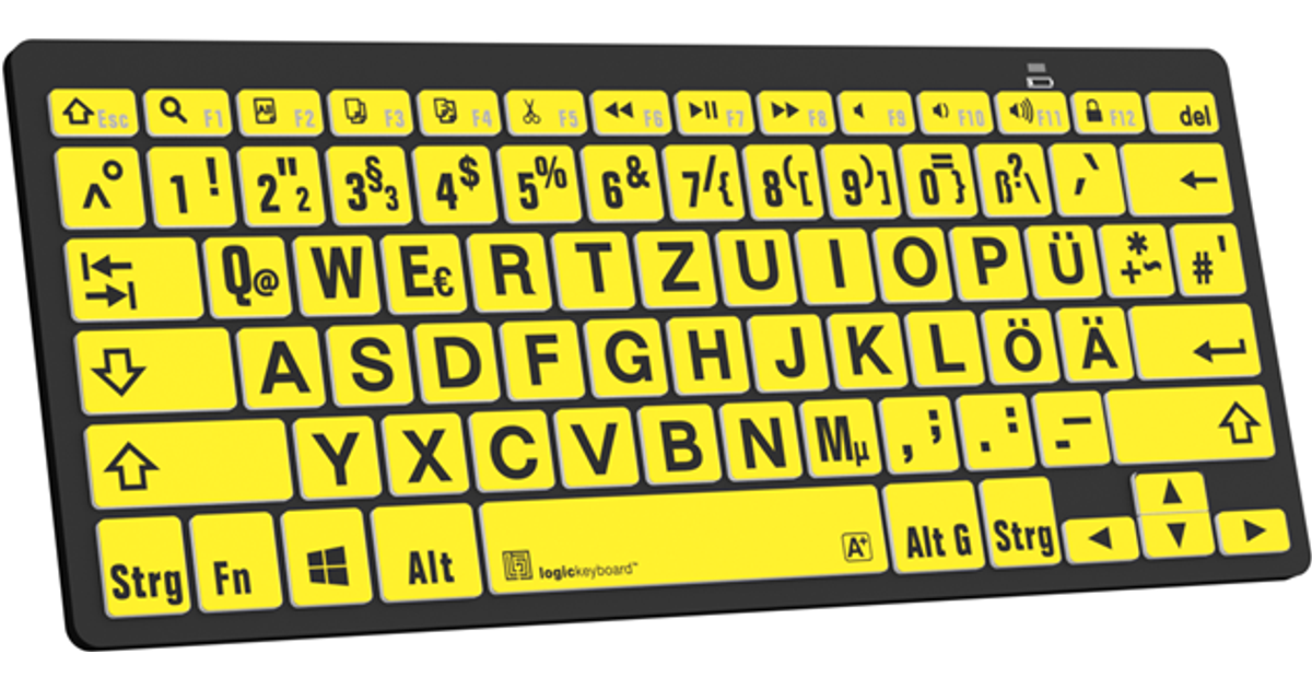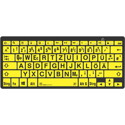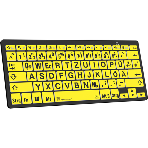 Logickeyboard LKB-LPBY-BTPC-DE, Bluetooth, QWERTZ, Must, Kollane