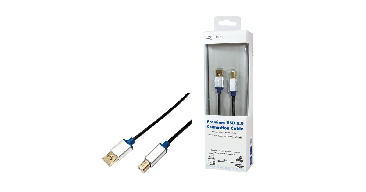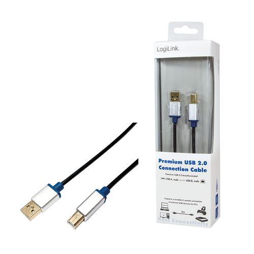 LogiLink 2m, USB2.0-A/USB2.0-B, 2 m, USB A, USB B, USB 2.0, Meessoost/meessoost, Must