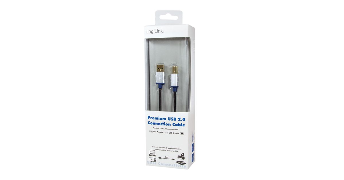 LogiLink 2m, USB2.0-A/USB2.0-B USB-kaabel USB A USB B Must