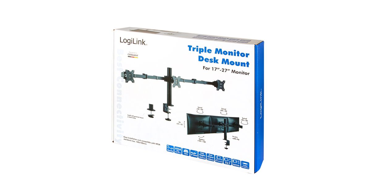 LogiLink BP0107, Klamber/läbiv polt, 21 kg, 43,2 cm (17"), 81,3 cm (32"), 100 x 100 mm, Must