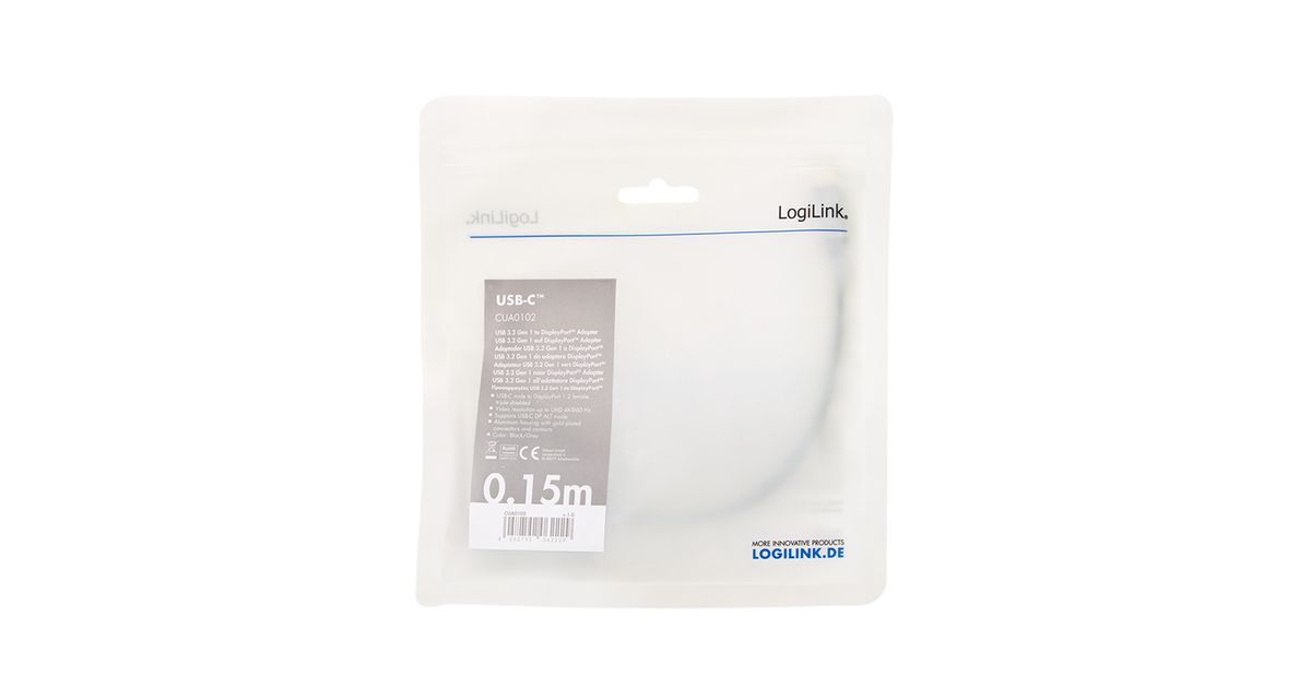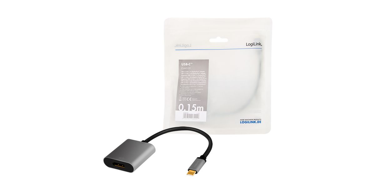 LogiLink CUA0102, USB 3.2 Gen1 Type-C, DisplayPort, 0,15 m, Must