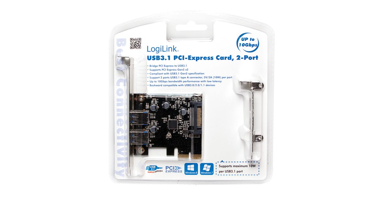 LogiLink PC0080, PCIe, USB 3.2 Gen 1 (3.1 Gen 1), 10 Gbit/s, 120 mm, 73 mm, 20 mm