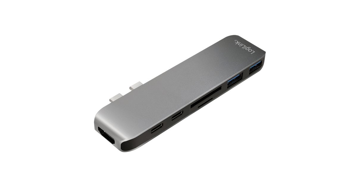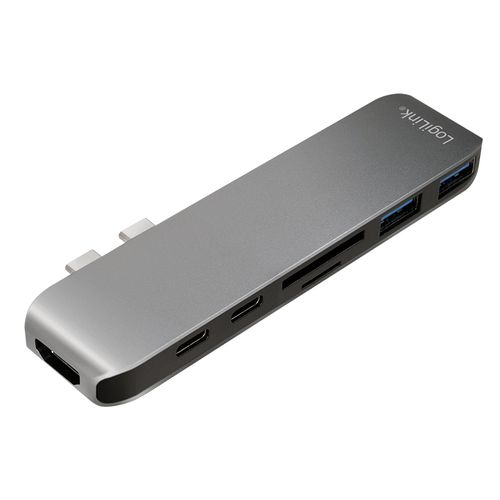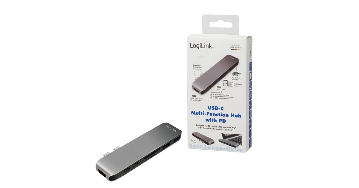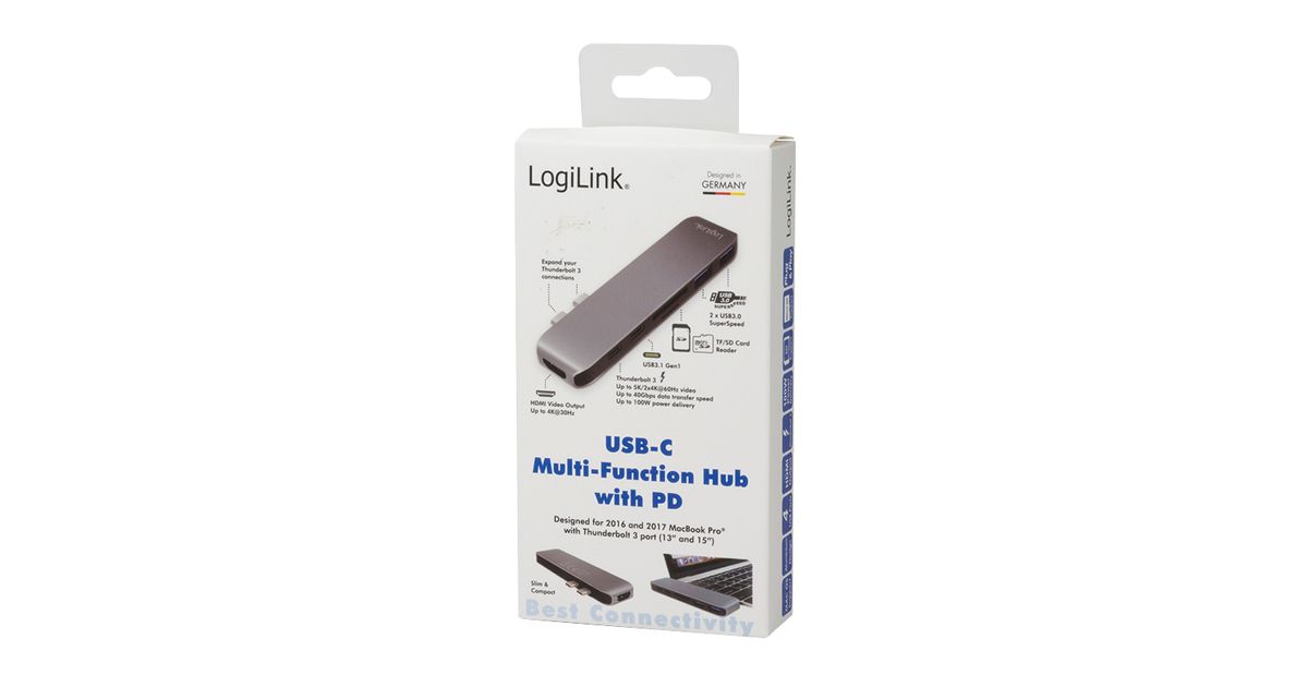 LogiLink UA0302, USB 3.2 Gen 1 (3.1 Gen 1) Type-C, HDMI, Thunderbolt 3, USB 3.2 Gen 1 (3.1 Gen 1) Type-A, MicroSD (TransFlash), SD, 5000 Mbit/s, Alumiinium, Must, Akrüülnitriil butadieen stüreen (ABS), Alumiinium