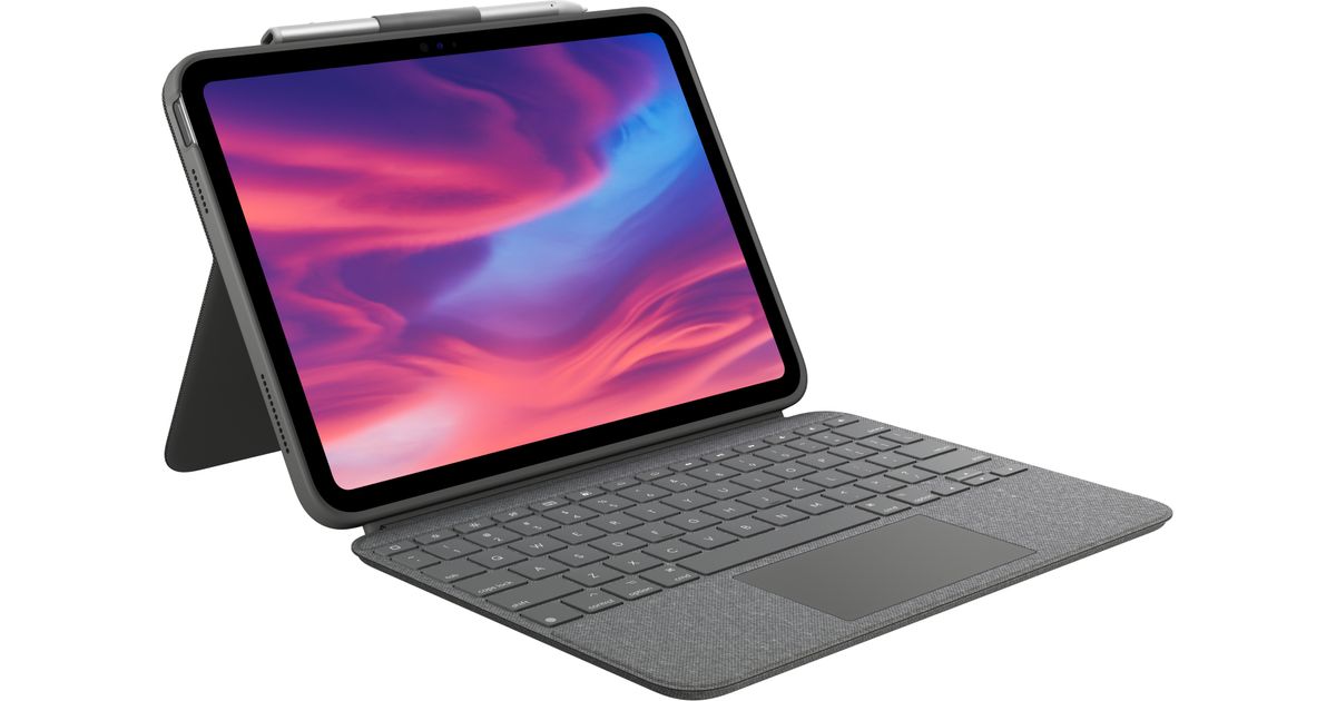 Logitech Combo Touch, iPad (10th gen) Model: A2696, A2757, A2777, Hall, Oxford Grey, Kriimukindel, Spill-resistant