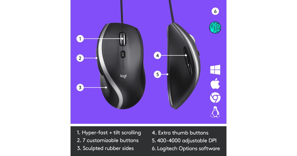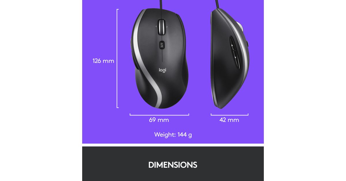 Logitech Corded Mouse M500S, Parempoolne, Optiline, USB tüüp A, 4000 DPI, Must