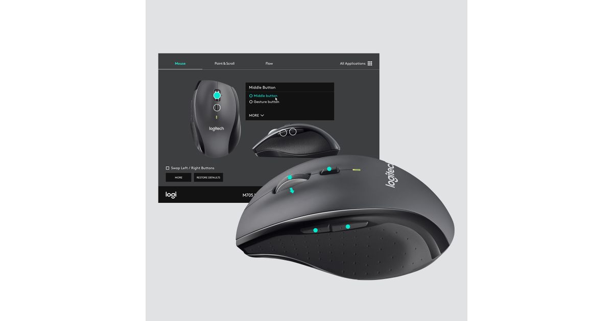 Logitech Customizable Mouse M705, Parempoolne, Optiline, Raadioside, 1000 DPI, Süsi