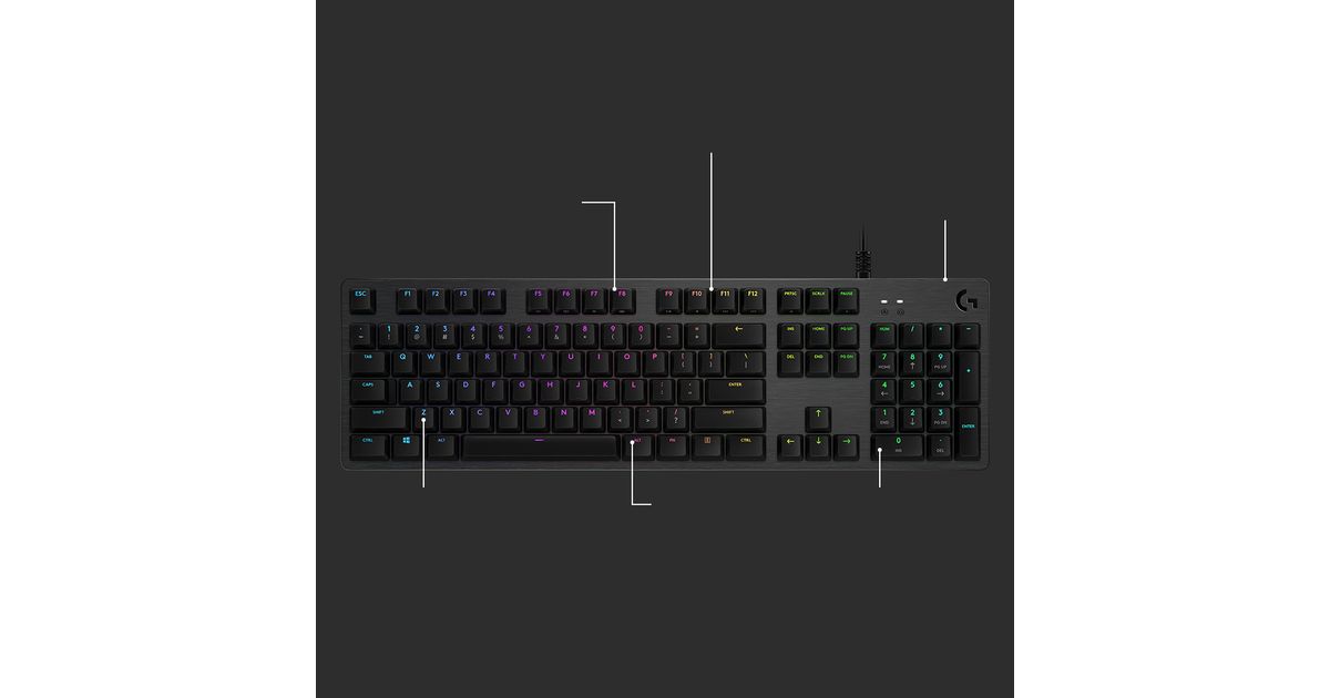 Logitech G G512 CARBON LIGHTSYNC RGB Mechanical Gaming Keyboard with GX Red switches, Full-size (100%), USB, Mehaaniline klahvlüliti, RGB LED, Süsinik