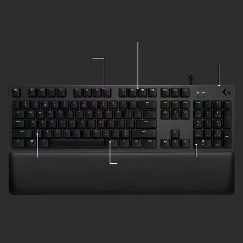 Logitech G G513 CARBON LIGHTSYNC RGB Mechanical Gaming Keyboard, GX Brown, Full-size (100%), USB, Mehaaniline klahvlüliti, QWERTZ, RGB LED, Süsinik