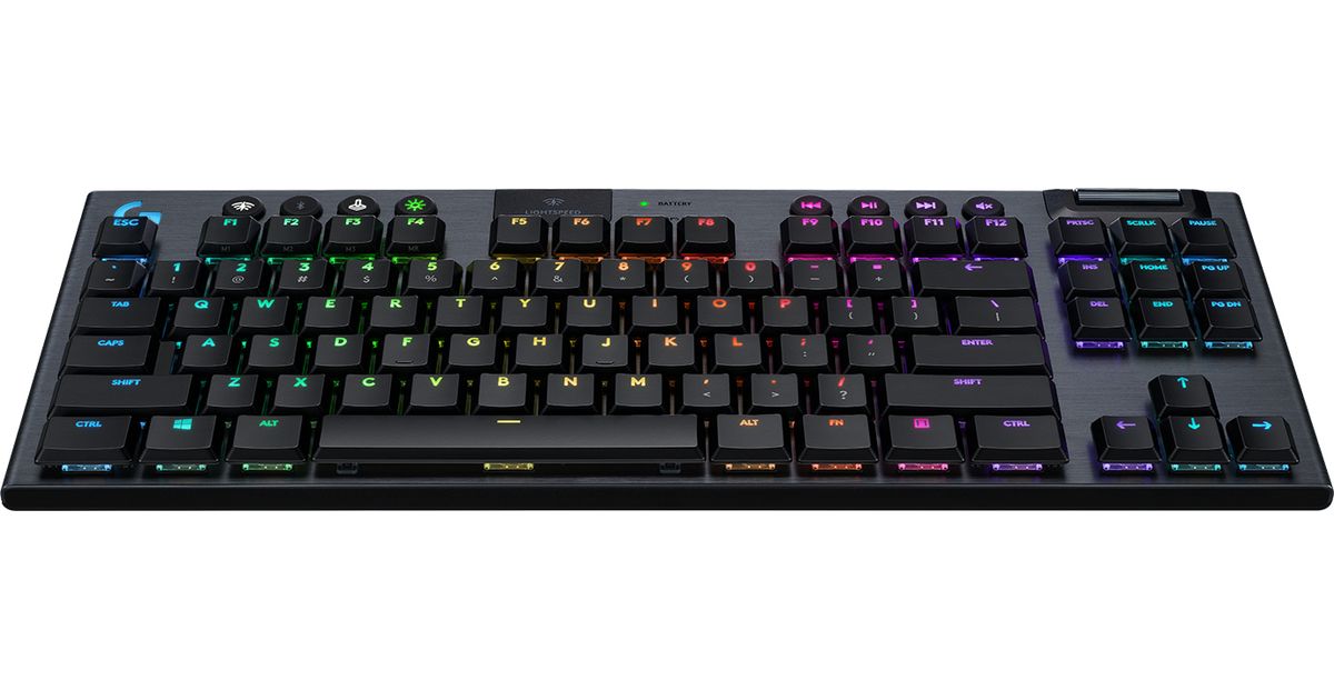 Logitech G G915 Tkl, Täissuuruses (100%), RF juhtmeta ühendus + Bluetooth, Mehaaniline klahvlüliti, QWERTY, RGB LED, Süsinik