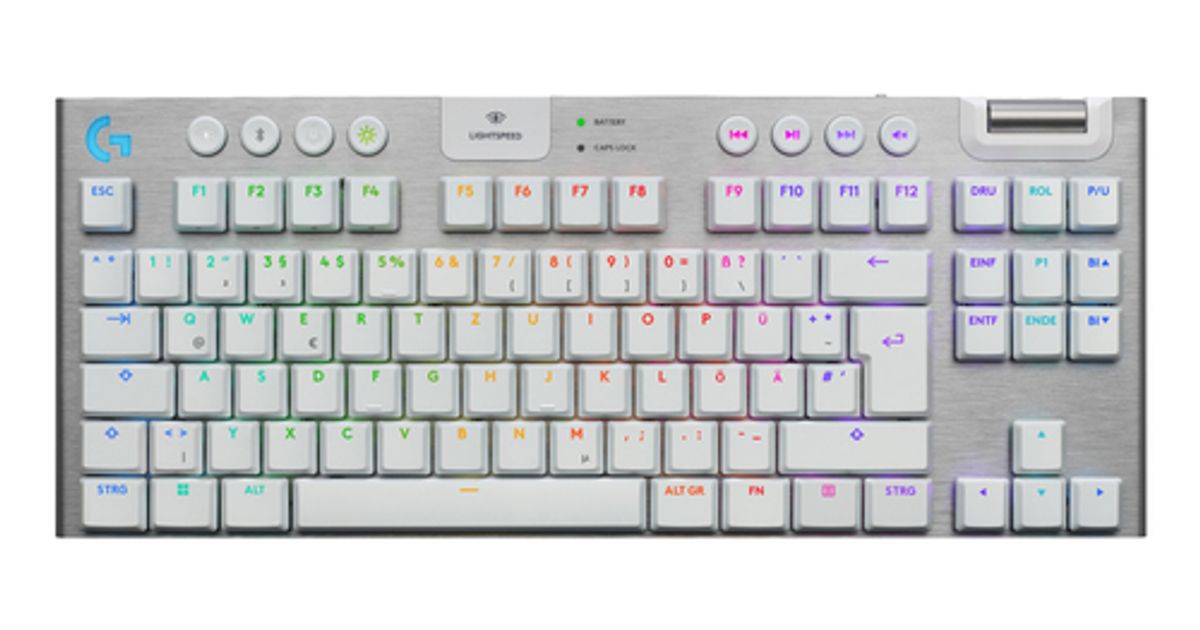 Logitech G G915 X - Tastatur - LIGHTSPEED - TKL - Hintergrundbeleuchtung - kabellos - Bluetooth 5.0, 2.4 GHz, USB - QWERTZ - Deutsch - Tastenschalter: GL Tactile - weiß (920-012733