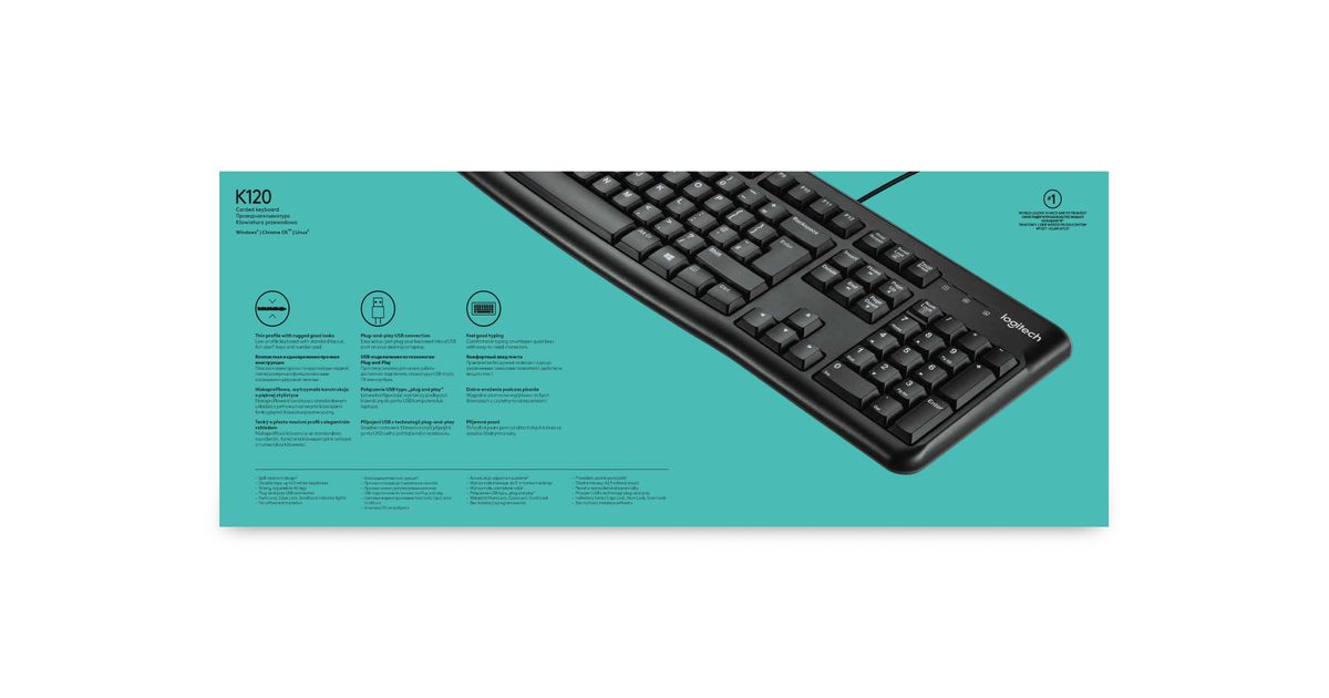 Logitech Keyboard K120 for Business, Täissuuruses (100%), Juhtmega ühendatud, USB, QWERTY, Must