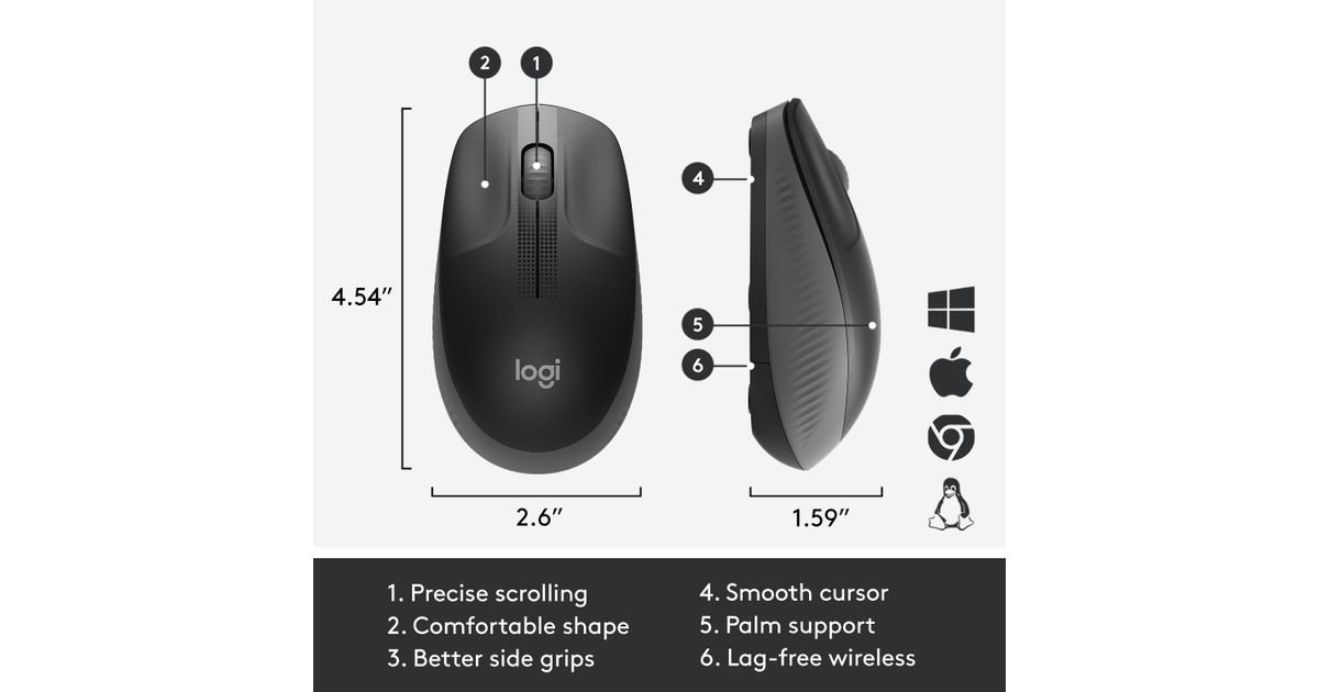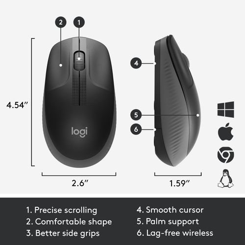 | Pakendi sisu | Full-size wireless mouse 1 AA battery (pre-installed) USB nano-receiver User documentation 2-year manufacturer’s guarantee |