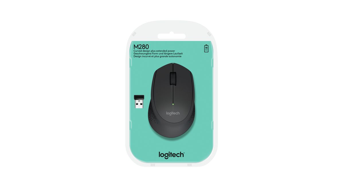 Logitech M280, Parempoolne, Optiline, Raadioside, 1000 DPI, Must