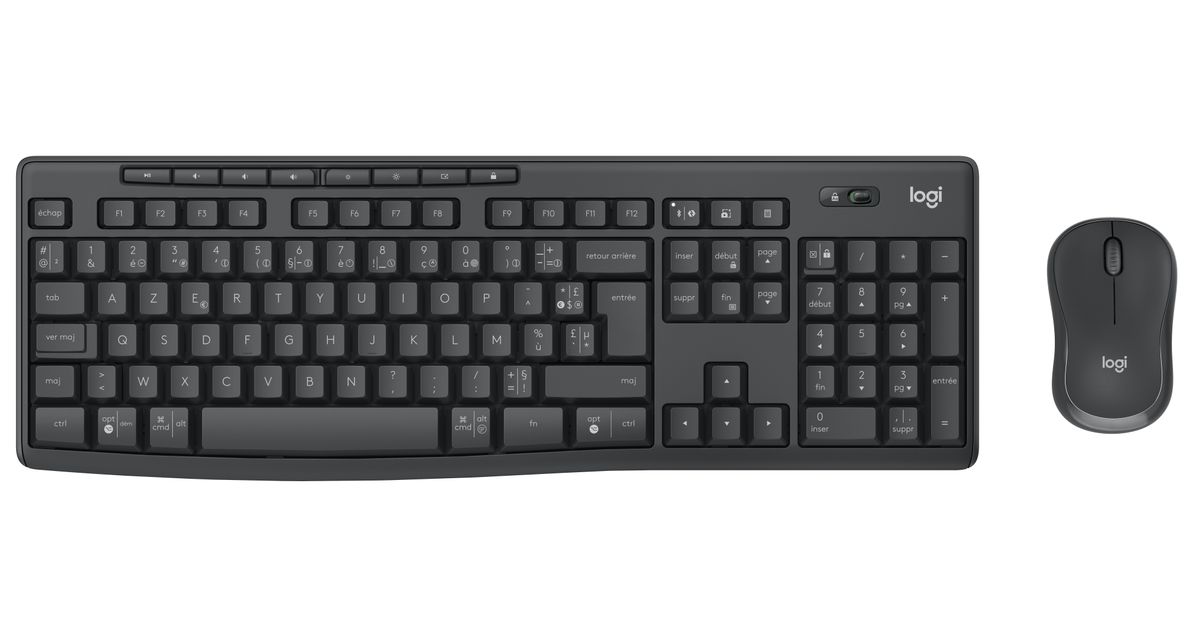 Logitech MK370 Combo for Business, Täissuuruses (100%), RF juhtmeta ühendus + Bluetooth, Membraaniga klahvlüliti, AZERTY, Grafiit, Hiir kaasa arvatud