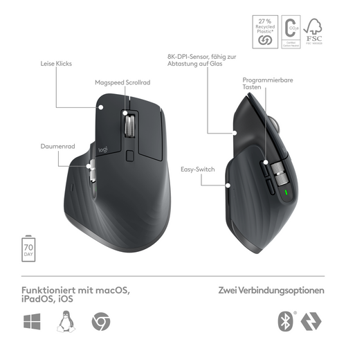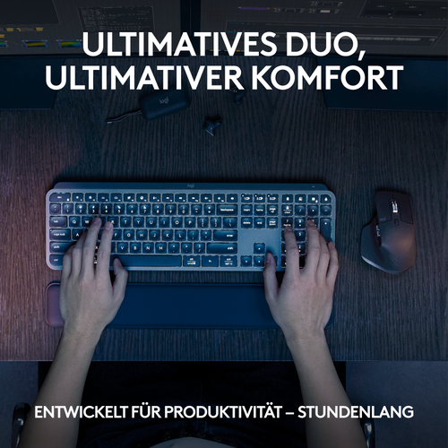 Logitech MX Keys S Combo klaviatuur Hiir kaasa arvatud RF juhtmeta ühendus + Bluetooth QWERTZ Saksa keel Grafiit