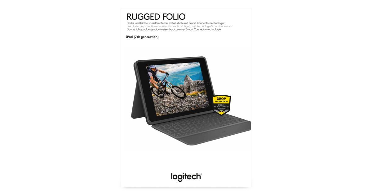 Logitech Rugged Folio, AZERTY, Prantsuse, 1,8 cm, 1,2 mm, Apple, iPad (7th gen), iPad (8th gen)