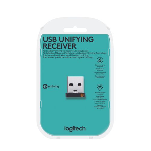 Logitech USB Unifying Receiver, USB vastuvõtja, 9 mm, 6 mm, 15 mm, 1,23 g, Must, Hõbe