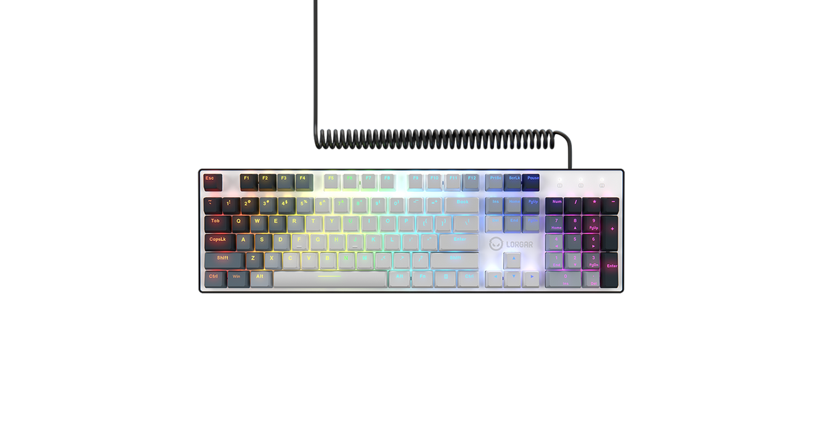 LORGAR Azar 514, Wired mechanical gaming keyboard, RGB backlight, 1680000 colour variations, 18 modes, keys number: 104, 50M clicks, linear dream switches, spring cable up to 3.4m, ABS plastic+metal, magnetic cover, 450*136*39mm, 1.17kg, white, EN layout