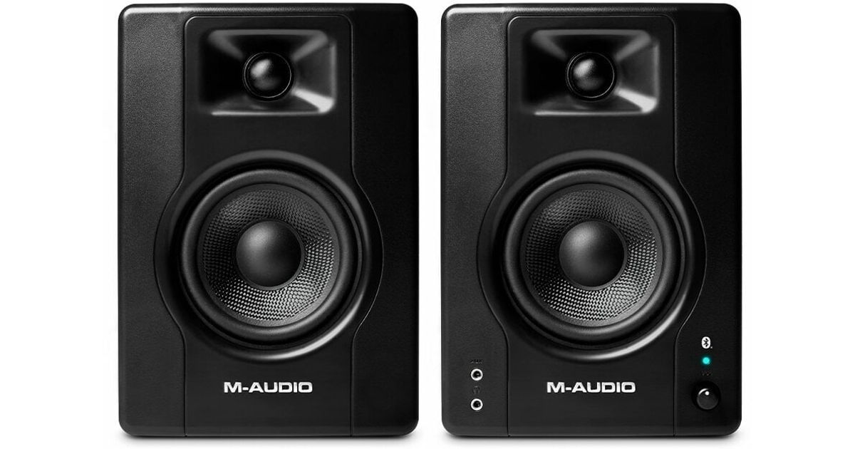 The M-Audio BX4BT multimedia reference monitors offer the flexibility to play audio from any Bluetooth streaming device with excellent studio sound quality. This opens up the possibility of playing audio from any Bluetooth device, including a turntable, telephone or even a computer, for streaming the reference mix from the computer.The BX4BT monitors from M-Audio produce 120 watts (peak) of professional sound in a futuristic design, which provides sound at a professional level. The dual-band design features an acoustic MDF cabinet with bass reflex that shifts low frequencies through modern black Kevlar transducers. In addition, improved rear ports and computer-optimized tweeters made of natural silk provide the full range of frequencies needed for any type of media.The BX4BT offers all the connections you need to play audio from all your devices. The rear panel features 1/4 ", 1/8" and RCA inputs, while the front panel features a 1/8 "aux input and headphone connection that turns off the speakers for private listening when connected. Very useful for late nights in the home office or when mixing when you don't want to disturb anyone.The left / right speaker active switch allows you to select which speaker is on the left or right. This is very useful if you are left-handed and want a speaker with volume control on the front panel on the left or vice versa. There are also High-EQ and Low-EQ controls on the rear panel to highlight low levels or add heights.The M-Audio BX4BT also comes with great DAW-MPC Beats so you can start making music right out of the box. MPC Beats is a DAW that makes it easy and fun to create professional-sounding podcasts, music, or professional-sounding productions on any Mac or PC.