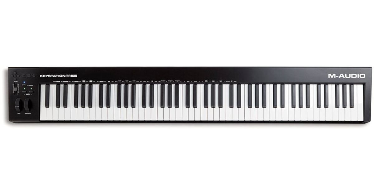The M-Audio Keystation 88 MK3 is the third generation of the world’s top-selling 88-note keyboard controller, and it incorporates improvements and refinements across the board. Many electronic musicians like having access to the full range of a piano keyboard. But not every keyboardist needs (or wants) hammer-action keys, along with the added weight, bulk, and expense. That explains why the M-Audio Keystation 88 series has been a best-seller indeed worldwide. For these legions of players, the Keystation 88’s smooth semi-weighted key feel, streamlined control set, lightweight portability, and robust build quality hit the sweet spot. You don’t have to be a pianist to benefit from having 88 full-sized keys in front of you. If you’ve never experienced the freedom of having the full range of music at your fingertips, take it from us: you're in for a serious creative boost.The Keystation 88 MK3 gives you all the control you need to take your creativity to the next level and get the most out of your DAW, hardware synths, and virtual instruments. This controller includes an assignable slider that doubles as a volume control, plus octave up/down buttons, pitch bend and mod wheels, DAW transport controls, sustain and expression pedal inputs, and more. With the optional Apple camera connection kit, it’s also perfect for hooking up to your iPad for mobile music production. Plus, you get three world-class DAWs and a powerful software production package, along with free lessons from Skoove and Melodics. Rocking a sleek new design, the M-Audio Keystation 88 MK3 is ready to Ignite your creativity.