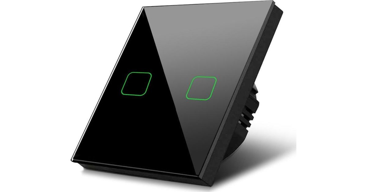 Maclean Light switch Maclean MCE712B double, two-way, two-way, glass cross, black with square backlight button, 86x86mm