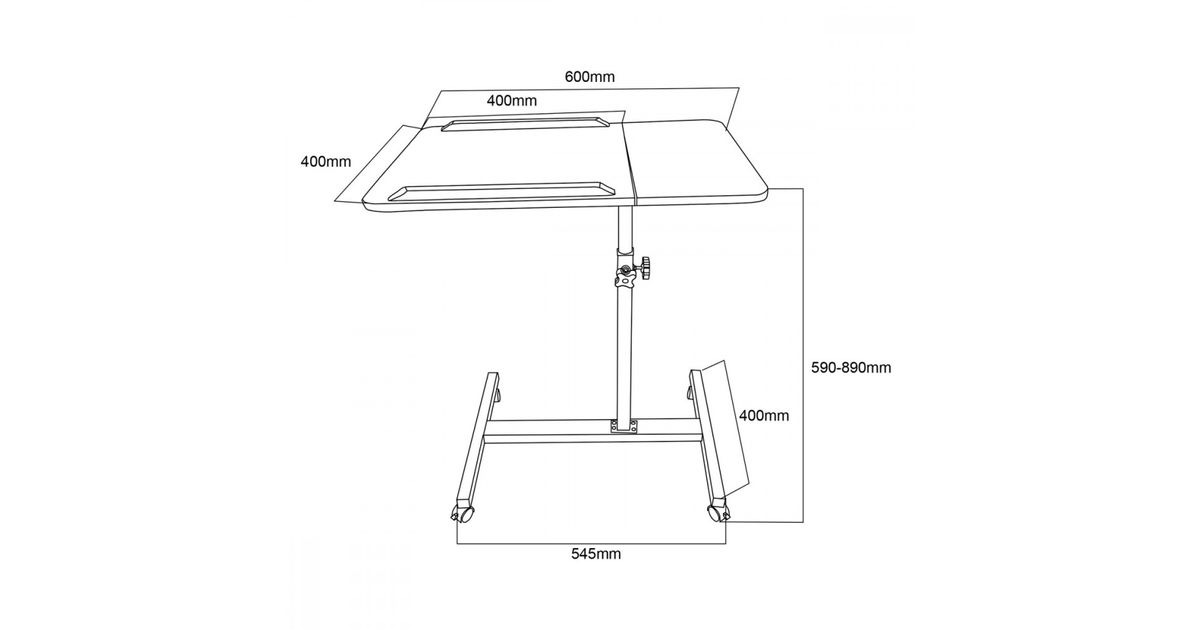 MACLEAN MC-121 MOBILE LAPTOP DESK/STAND - ERGONOMY AND MOBILITY IN ONE Mobile laptop desk is an ideal solution for people looking for a flexible and comfortable workstation - both at home and in the office. The desk has an adjustable height range of 590 to 890 mm, allowing you to adjust its level to suit different applications and user preferences. Such a range makes the piece of furniture versatile and will work well in many environments - both home and professional. Thanks to the adjustment, it is possible to conveniently position the tabletop at the appropriate height, which increases the comfort of work and makes it easier to organize the workspace.