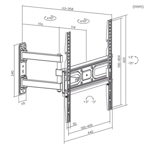 Maclean TV-Halterung, max vesa 400x400, für gebogene TVs, 33-55", 35kg, MC-647N