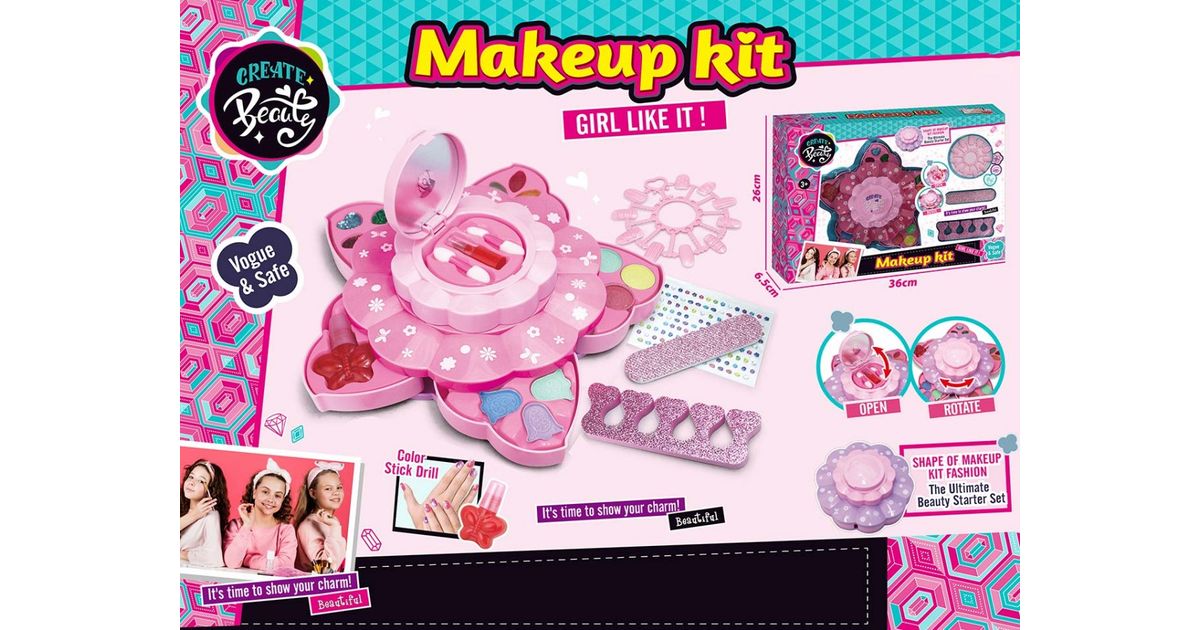 Become a make-up artist and experiment with colours. Surprise your friends with your altered look by mixing colours of eye shadows and glosses. Colour your lips, eyelids and cheeks with ease with this kit, while the ingredients are gentle on the skin and wash off easily. The mass of fun will make this make-up kit a great choice for a growing girl. It's great fun to play with!