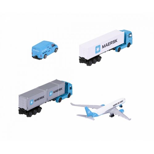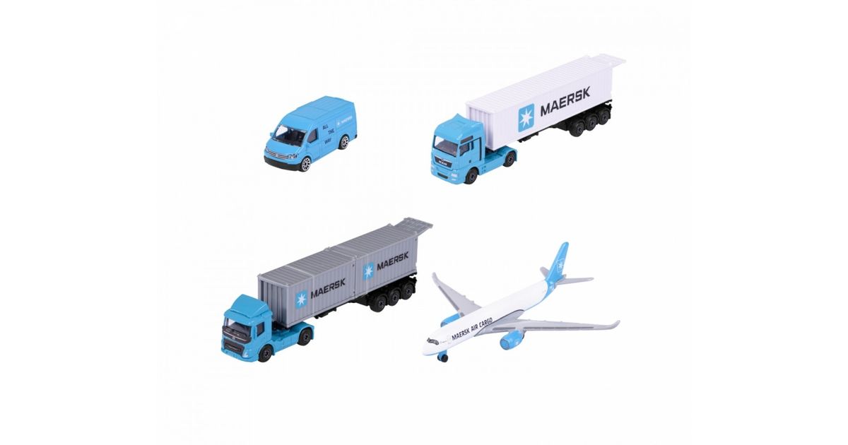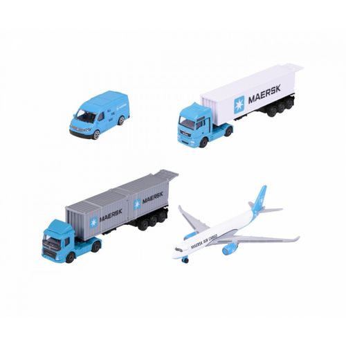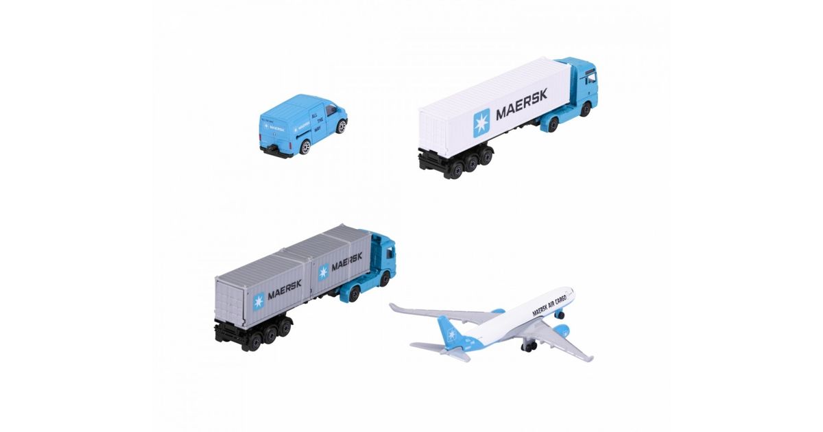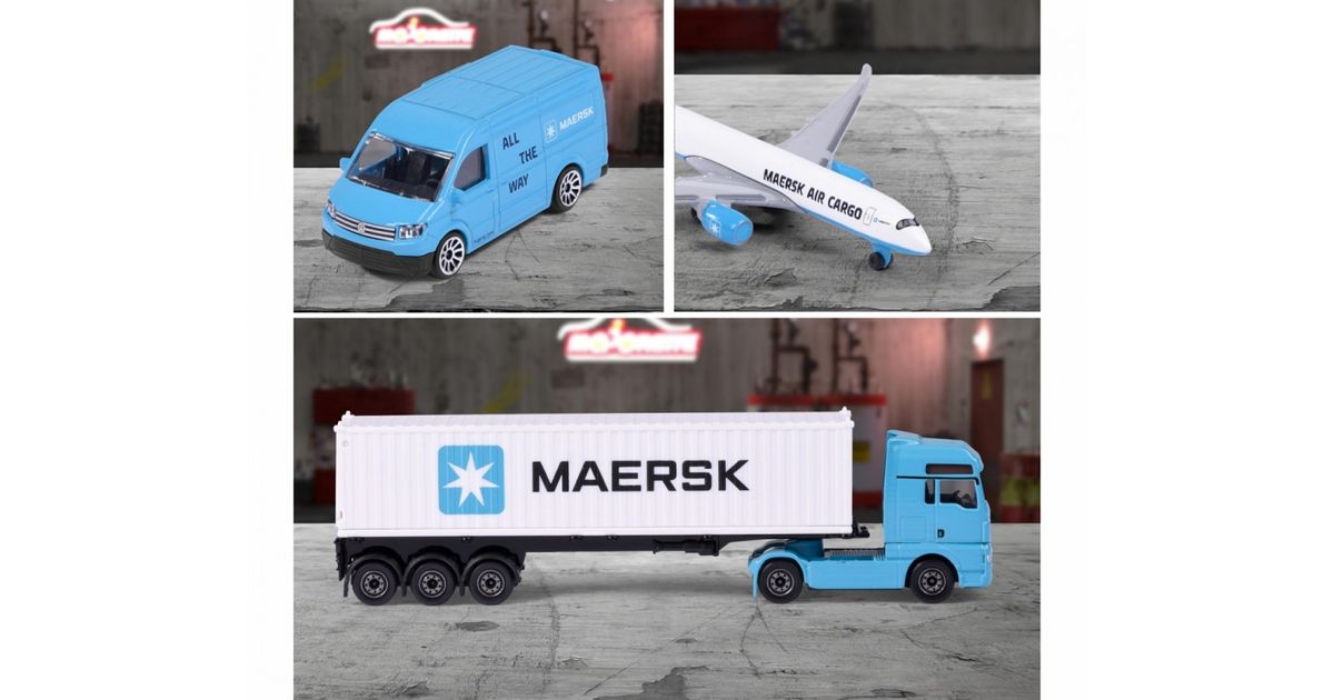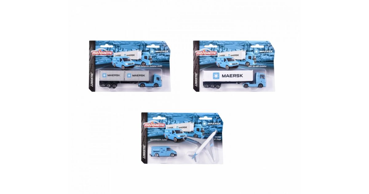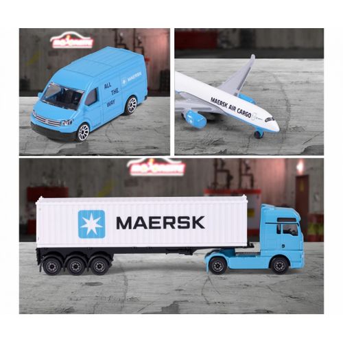 Majorette transport vehicle Maersk 1 die-cast vehicle model (Volvo container truck, MAN truck or Volkswagen Crafter with Airbus A350-900), shipped randomly, toy for children aged 3 years and over