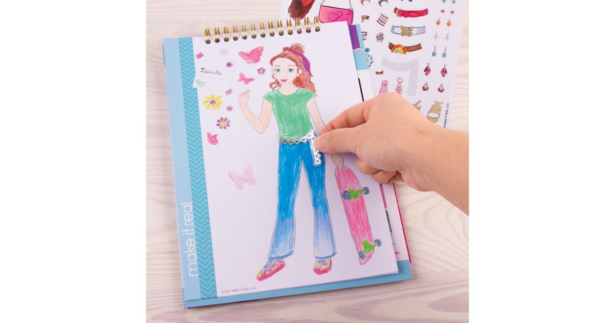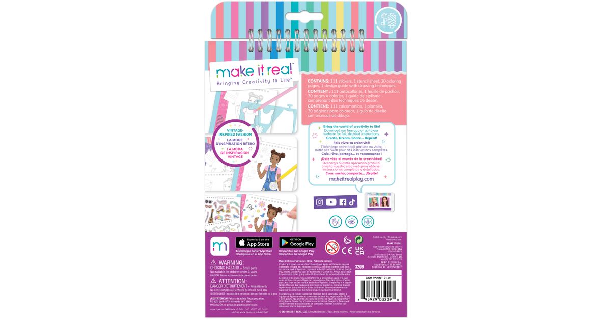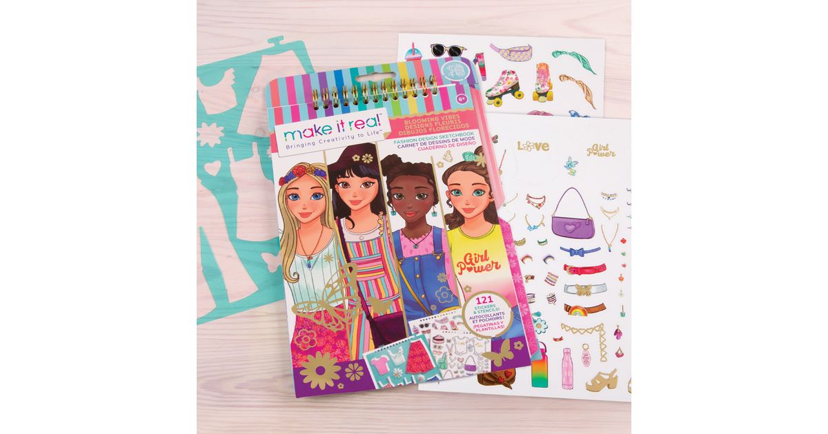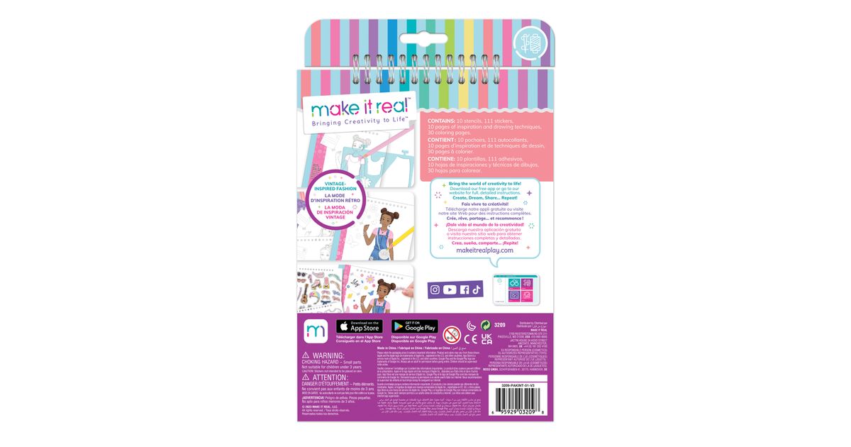 Make it Real retro visandiraamat on suurepärane algus väikestele disaineritele ja kunstnikele. Siit leiate erinevaid kleebiseid ja šabloone, palju värvimislehti ja disainerite brošüüri, kust saate palju loomingulisi ideid.