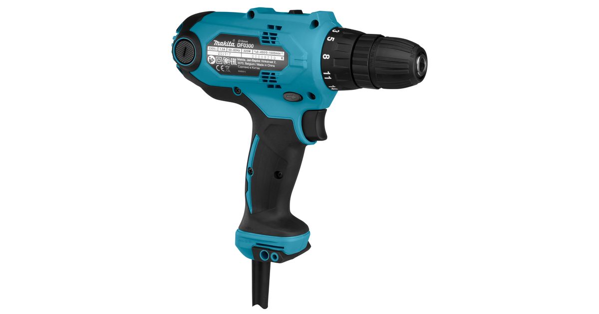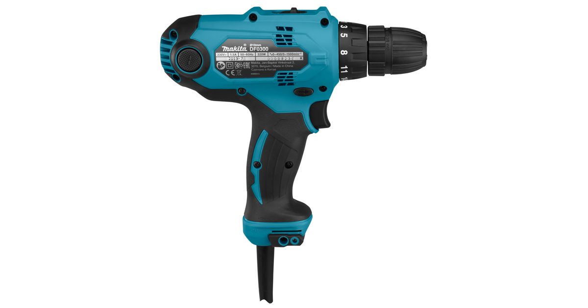 Makita DF0300, Elektritrell, Võtmeta, 1 cm, 1500 RPM, 2,8 cm, 1 cm