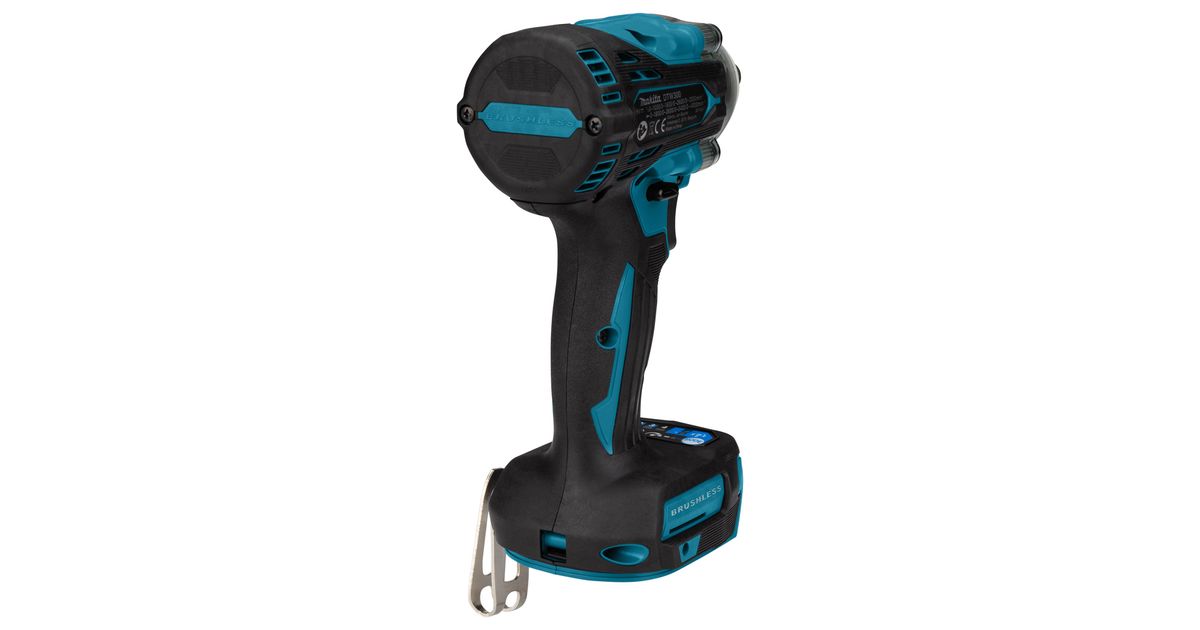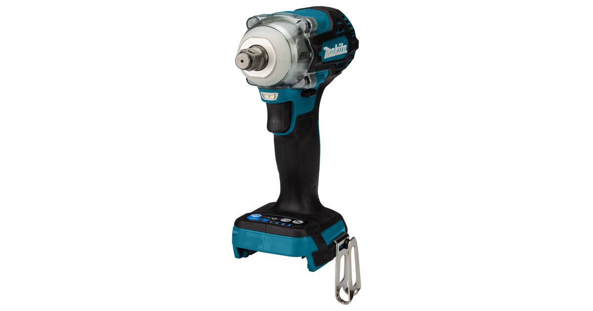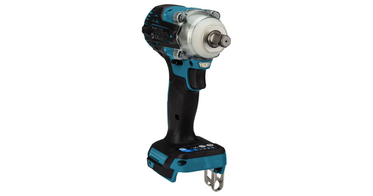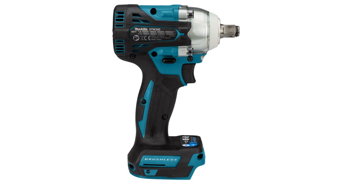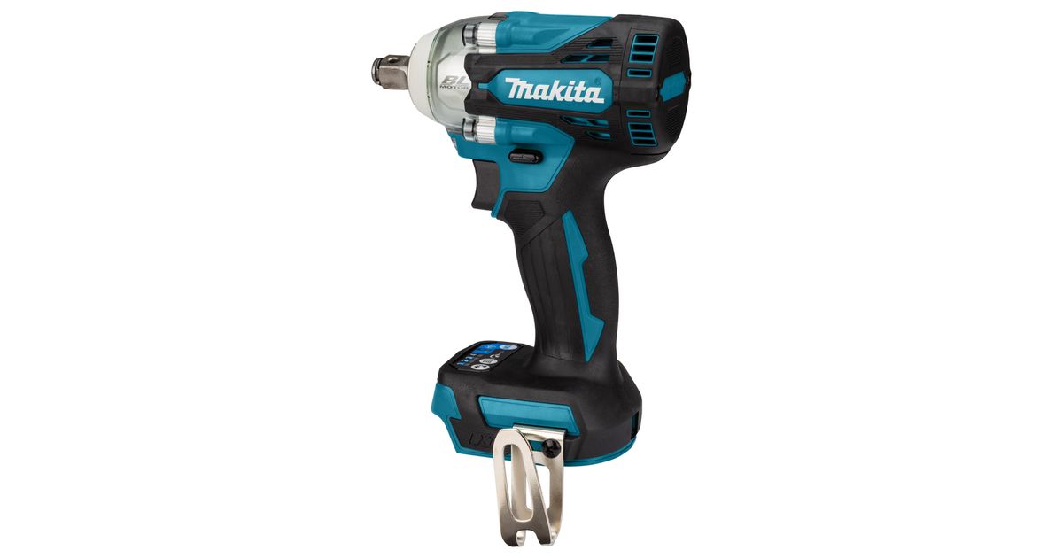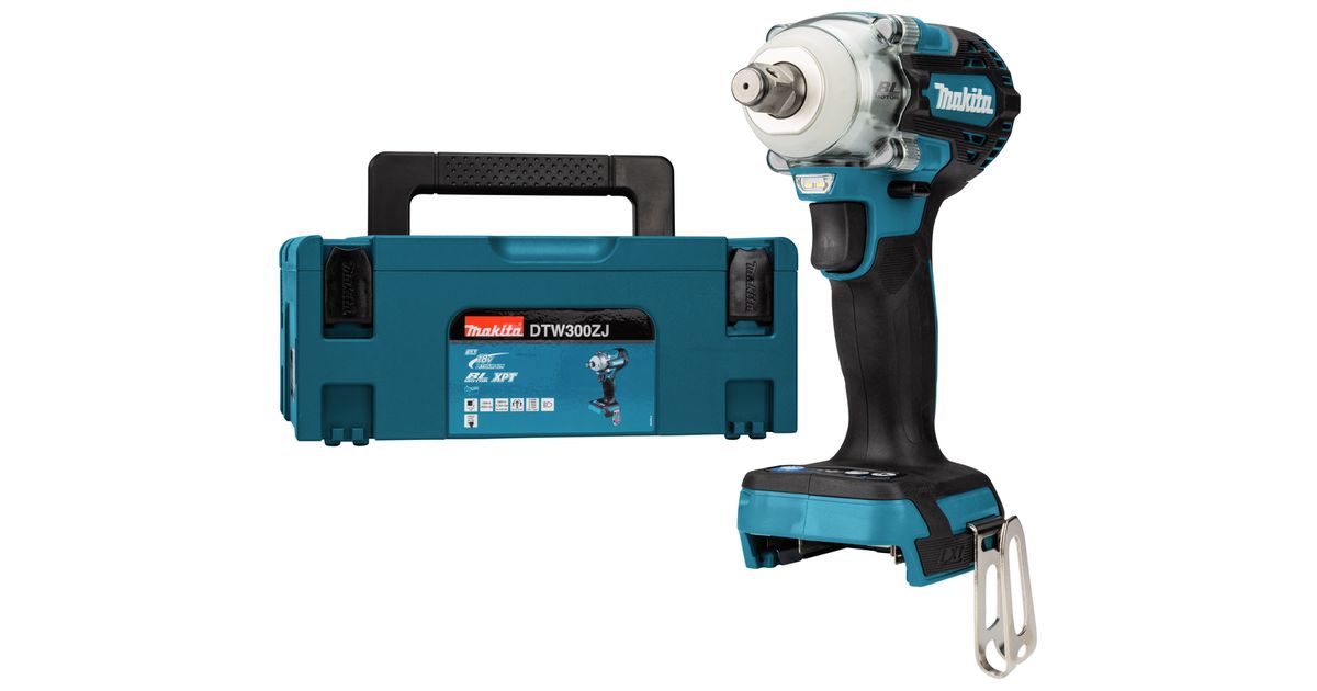 Makita DTW300ZJ Akku-Schlagschrauber, Löökkruvikeeraja, Püstolkäepide, 1/2", Must, Sinine, Hall, Harjadeta, Riputamiskonks