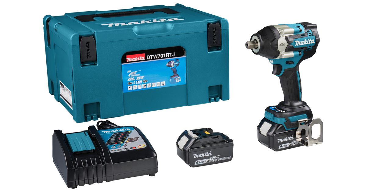 Makita DTW701RTJ, Löökkruvikeeraja, Püstolkäepide, 1/2", Kiirvabastatav padrun, Must, Sinine, Harjadeta