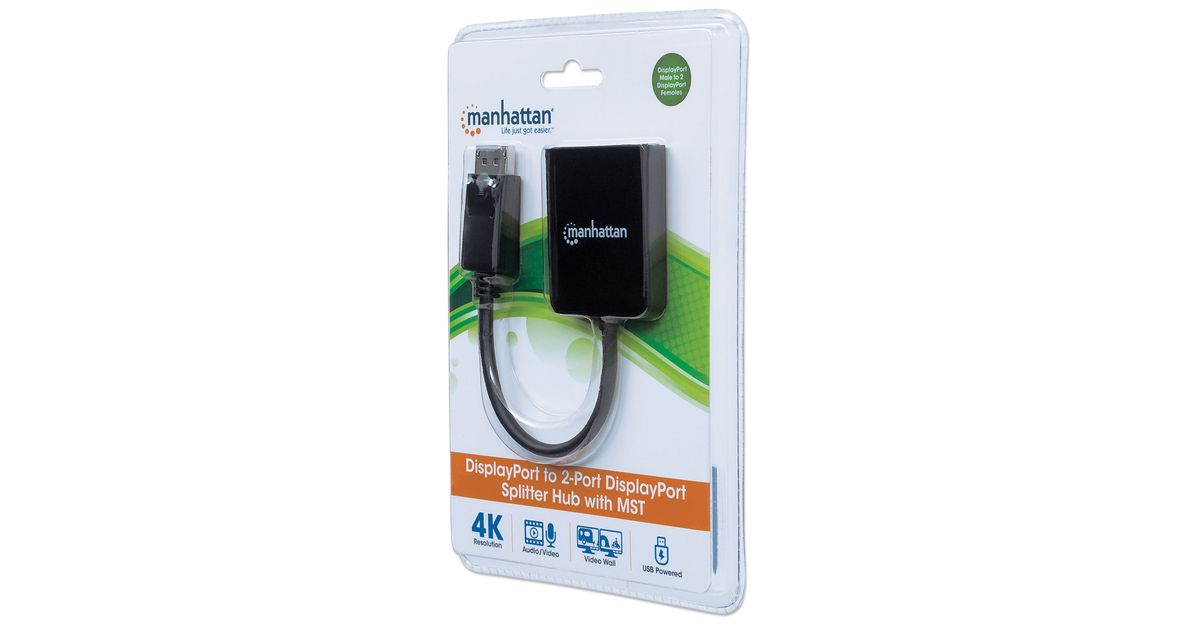 Manhattan 207768, DisplayPort, 2x DisplayPort, 3840 x 2160 pikslit, Must, Plast, 4K Ultra HD