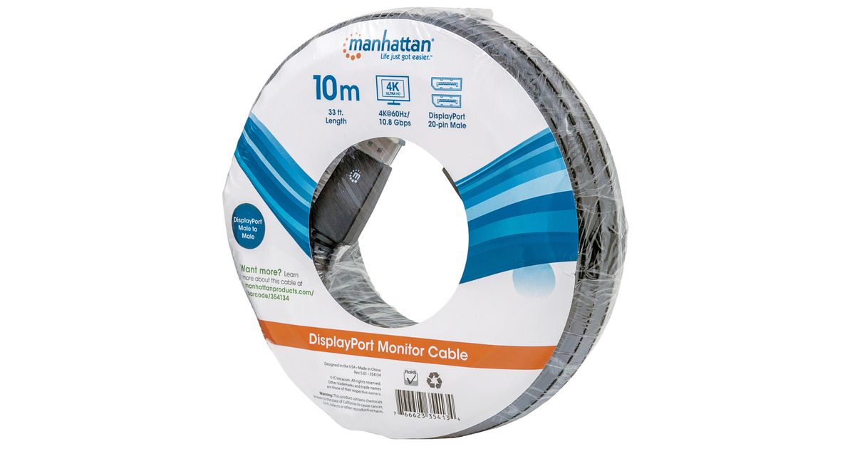Manhattan 354134, 10 m, DisplayPort, DisplayPort, Meessoost, Meessoost, Must