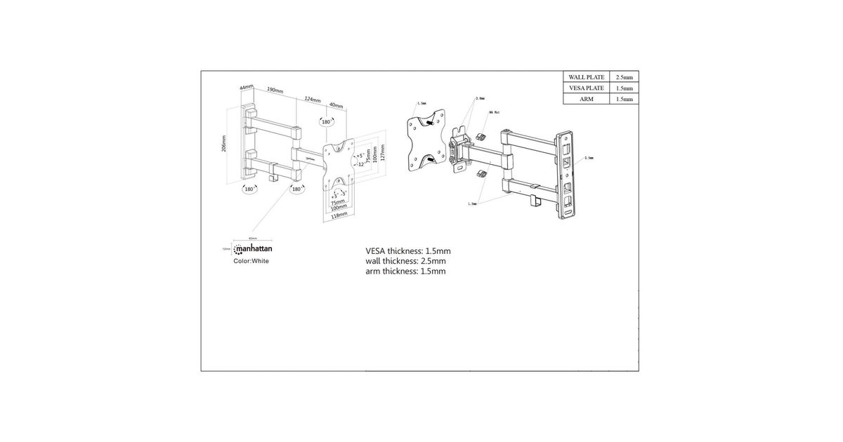 Manhattan 461382, 20 kg, 33 cm (13"), 68,6 cm (27"), 75 x 75 mm, 100 x 100 mm, Must