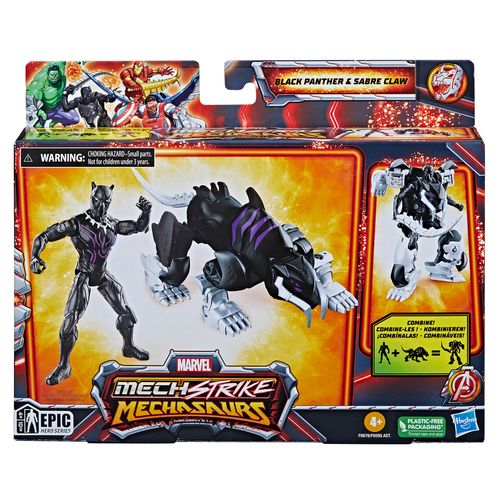 Liitu oma lemmik Tasujate kangelaste ja kurikaeladega Universumi saatuse eest käivas lahingus! Meie kangelased liituvad Mechasauridega, et aidata peatada Ultron ja tema eelajalooline uue maailma kord! Miski ei saa peatada maailma lemmkuimaid Marveli kangelasi oma vaenlaste peatamisest, kui ühinevad nende võimed ja dino võimed. Mängi oma lemmik Mech Strike Mechasaur superkangelase või pahalasega uues eelajaloost inspireeritud maailmas. 10 cm skaalaga figuuridel on artikuleeritud jäsemed ning komplektis on ka Mechasaur figuur mida lahti võttes saab ehitada mech ülikonna. Lisaks leiad komplektis aksessuaaridena erinevad relvad ja laengud, et lavastada põnevaid lahinguid Ultroni vastu!
