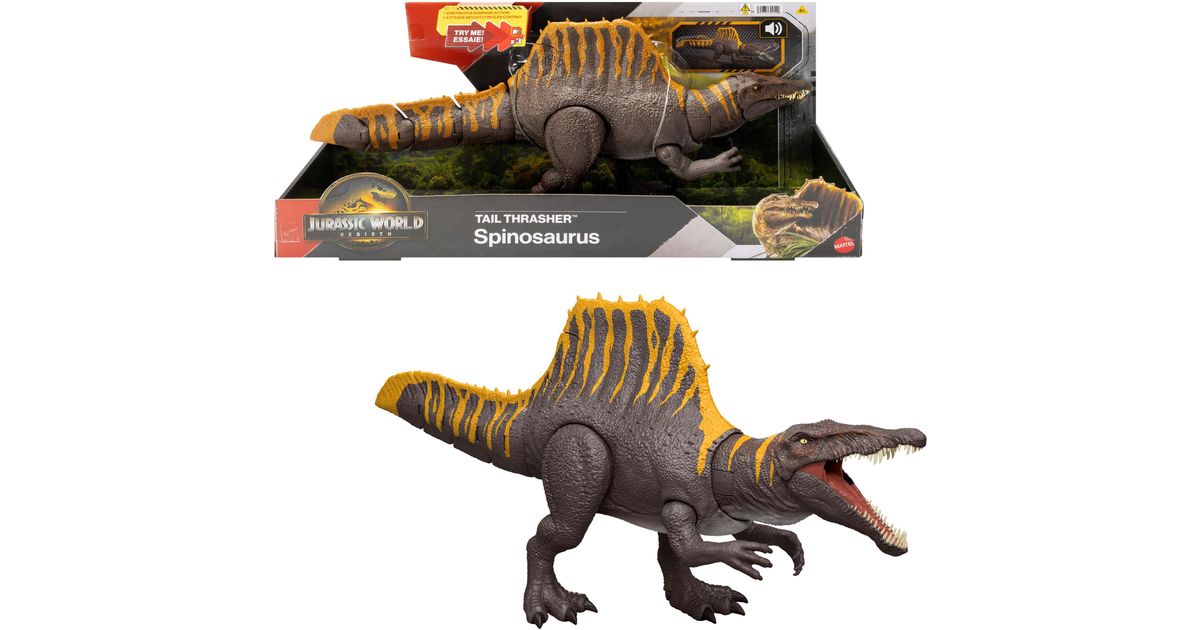 Mattel Jurassic World Rebirth Tail Thrasher™ Spinosaurus Dual Attack Dinosaur Figure Toy (JGB56)