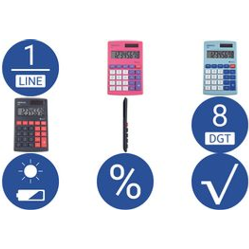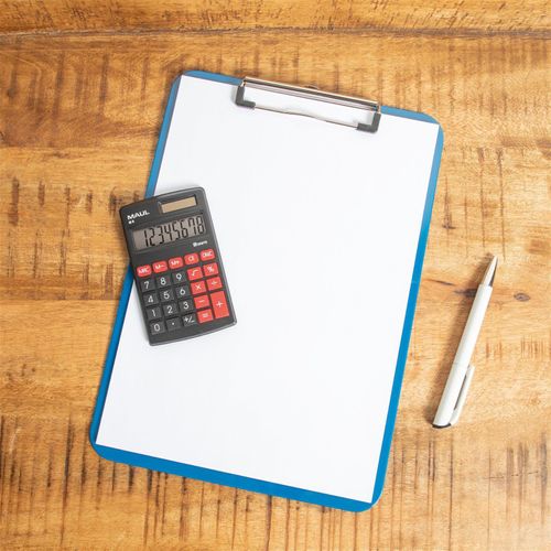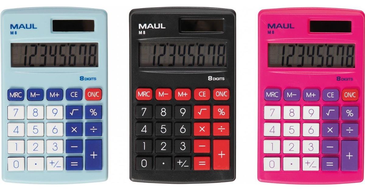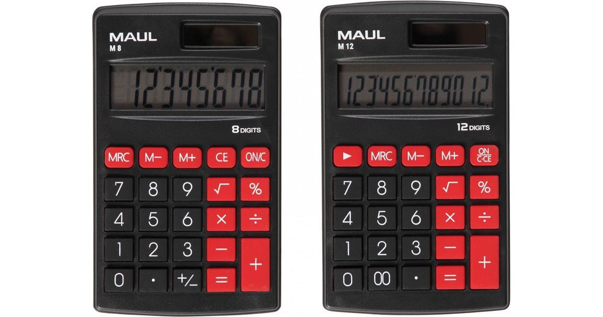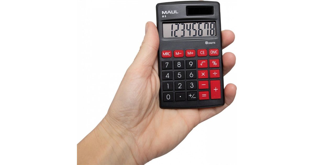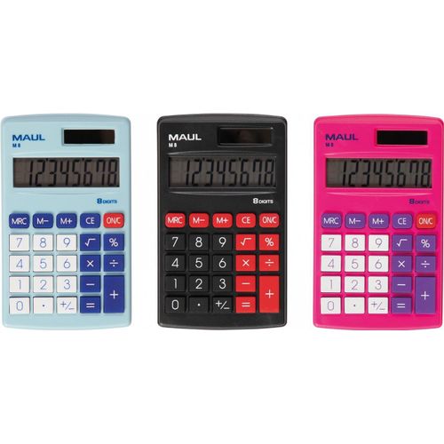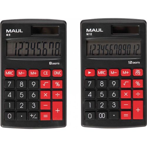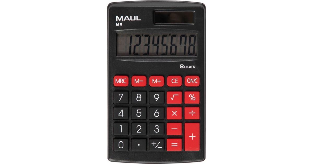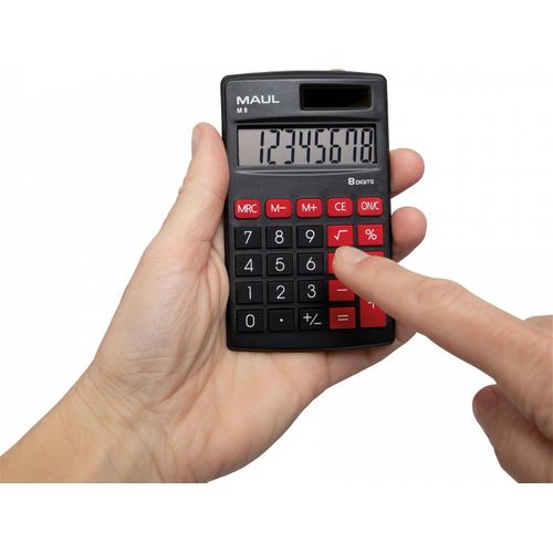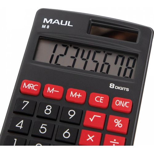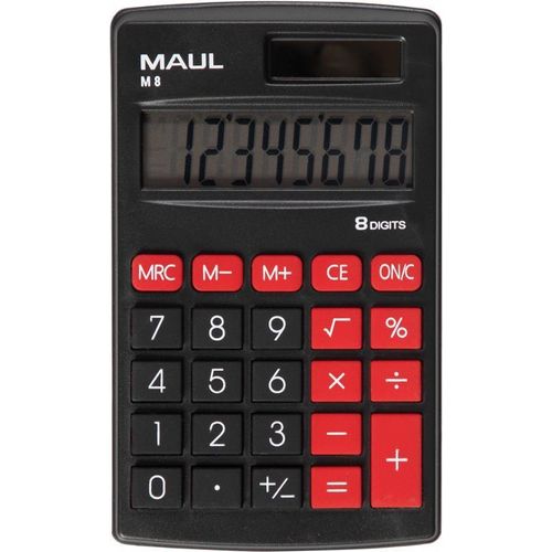 MAUL M 8, Tasku, Ekraanikalkulaator, 8 numbrid, 1 joont, Aku/päikesepatarei, Must, Punane
