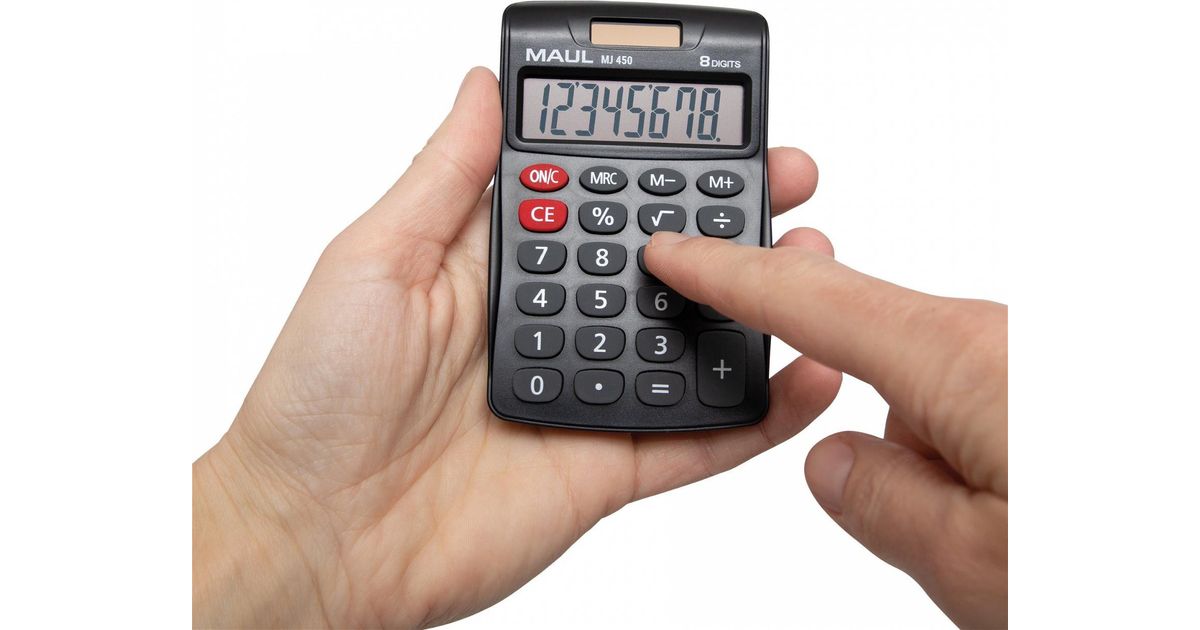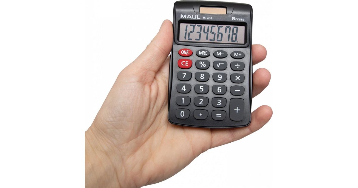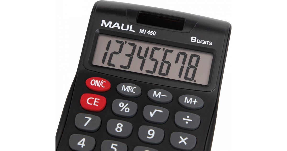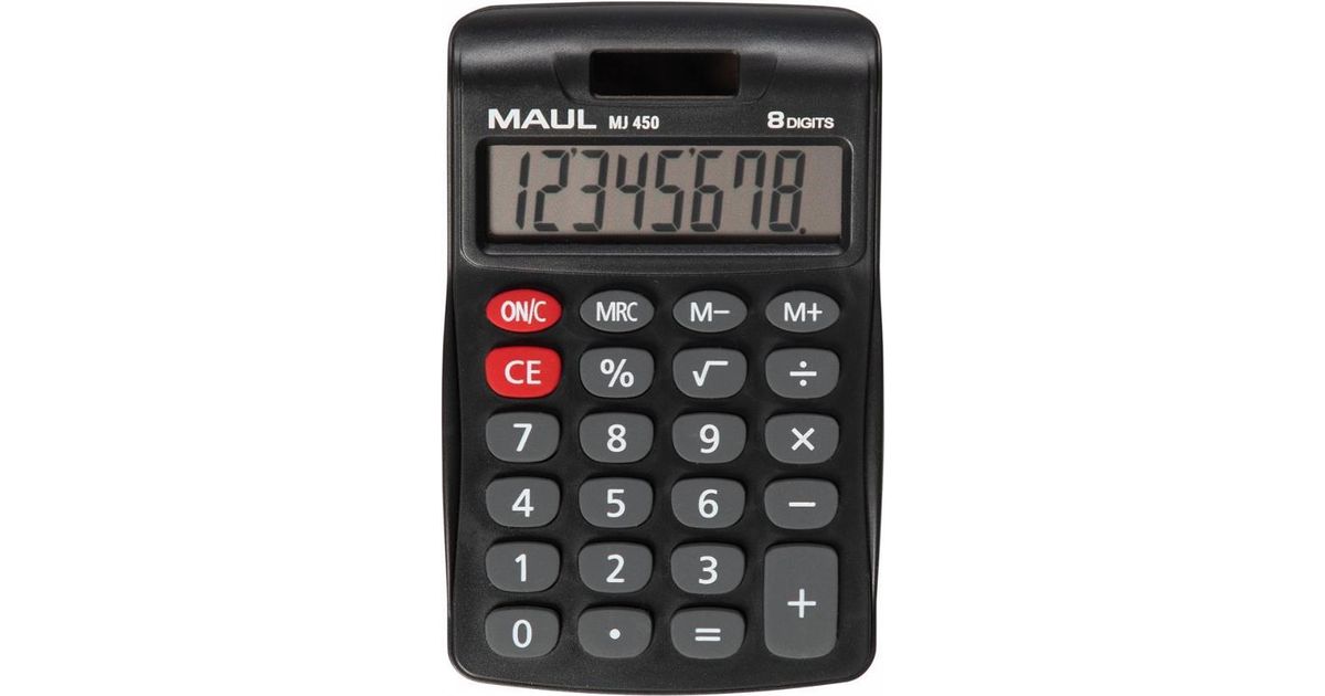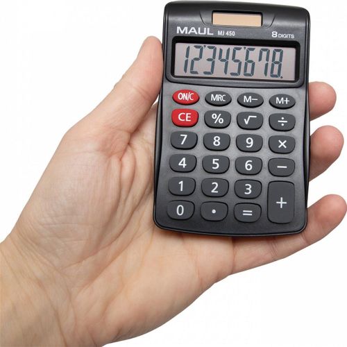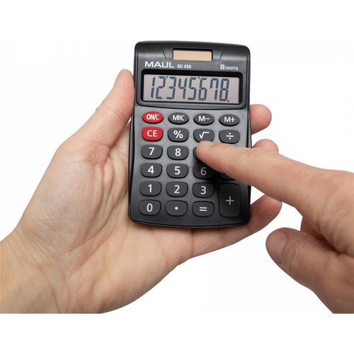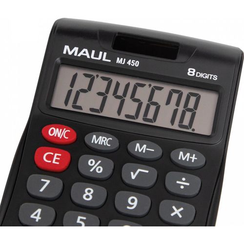 MAUL MJ 450, Tasku, Ekraanikalkulaator, 8 numbrid, 1 joont, Patarei, Must