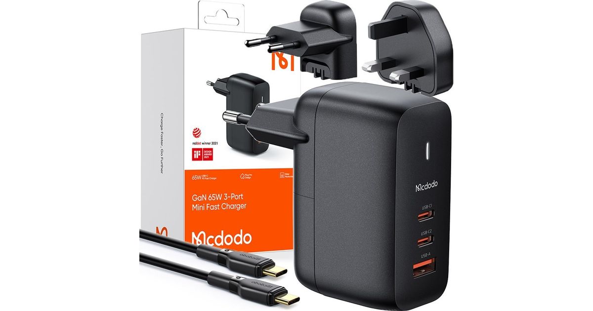 Mcdodo laadija UNIVERSAALNE LAADIJA TELEFONILE, SÜLEARVILE, GAN 3.0, KIIRLAADIMINE, USB-C, PD, USB-A, 65W, MCDODO
