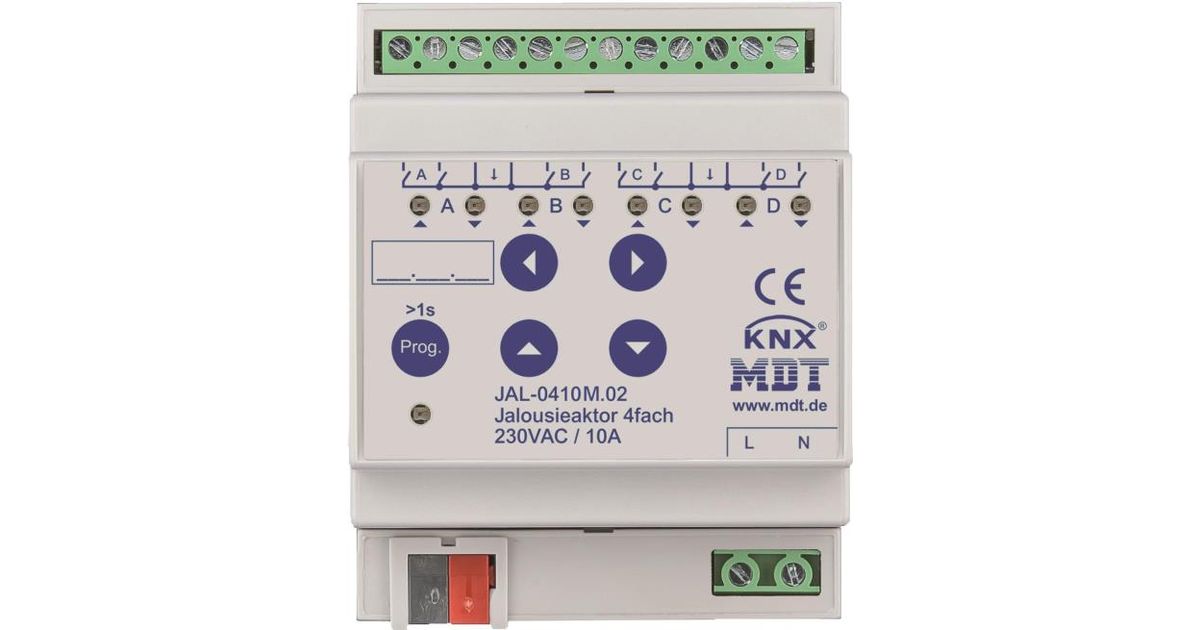 MDT JAL-0410M.02 Jalousieaktor 4fach 4TE REG 10A 230VAC m.Fahrzeitmessung (JAL-0410M.02)