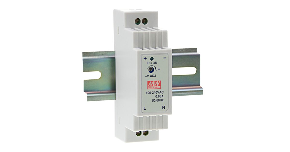 AC-DC Industrial DIN rail power supply; Output 15Vdc at 1A; plastic T-shape case