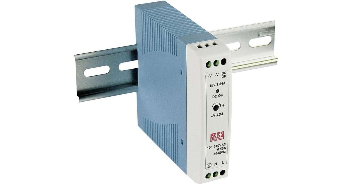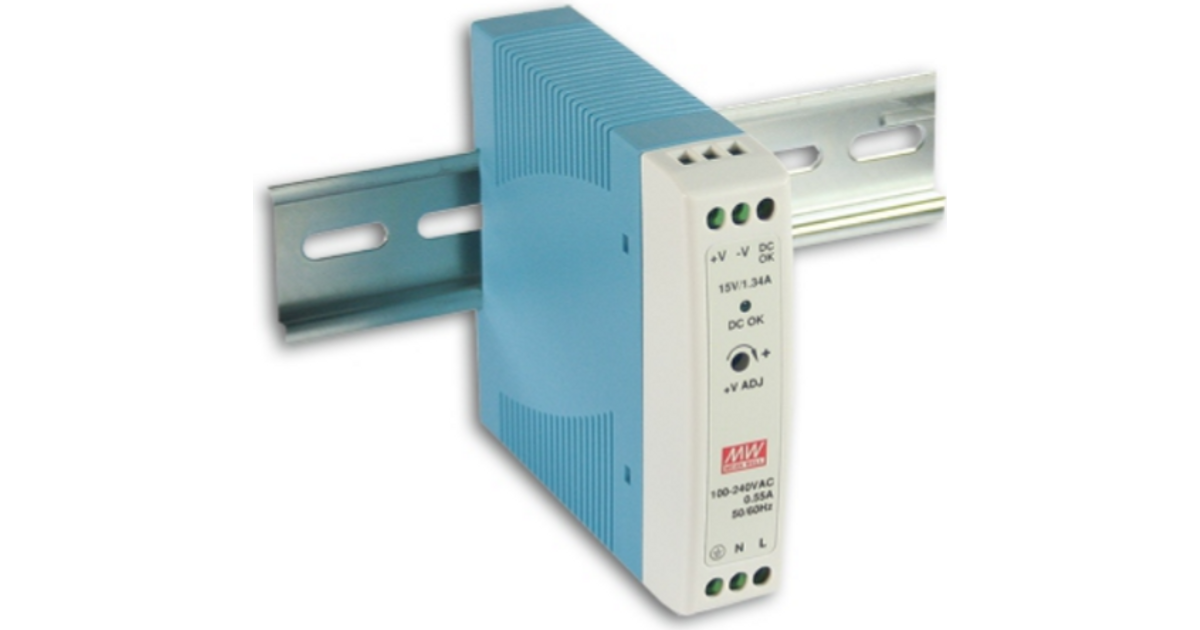 MEAN WELL MDR-20-12, 20 W, 85 - 264 V, 47 - 63 Hz, 0.35 - 0.55 A, 50 ms, 80 protsenti