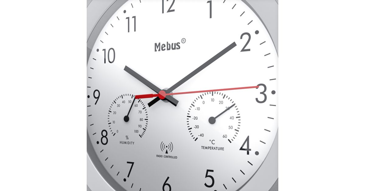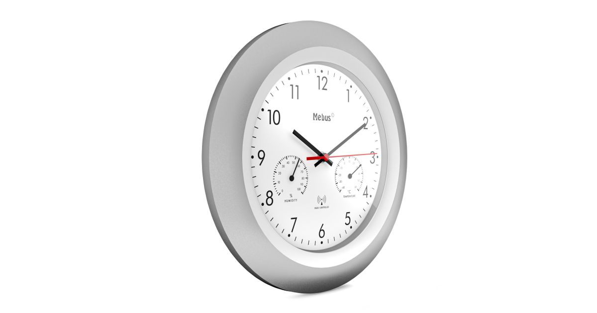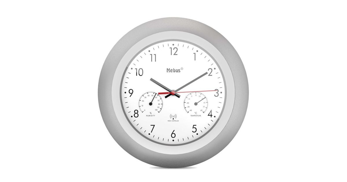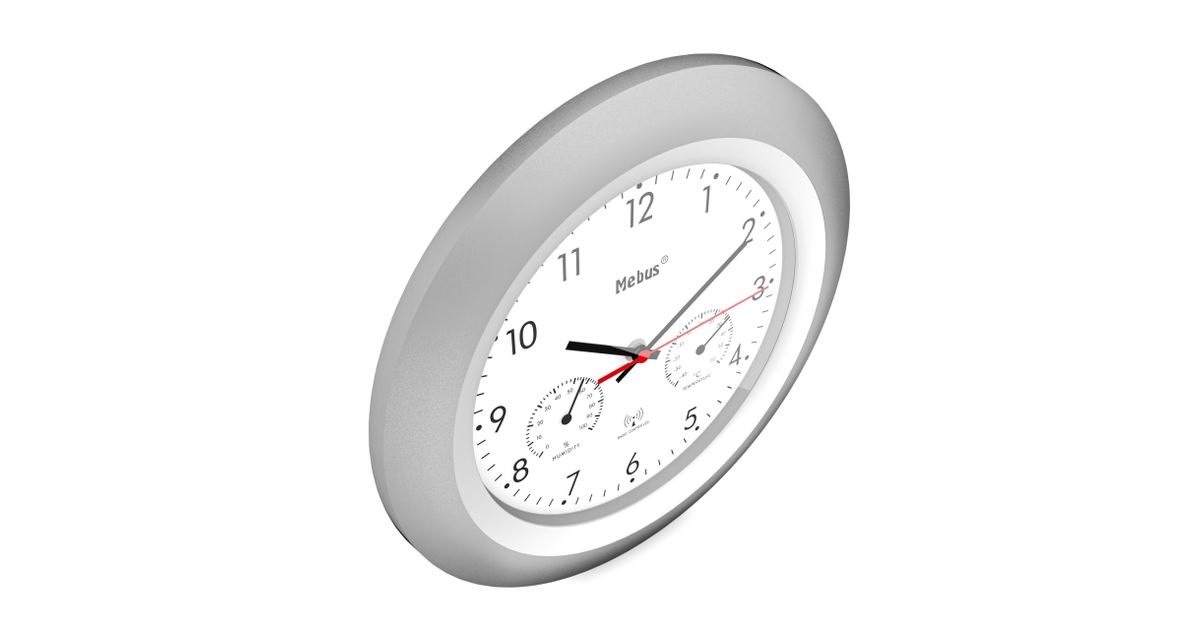 Mebus 19450 seinakell Digitaalne seinakell Ümmargune Hõbe, Valge