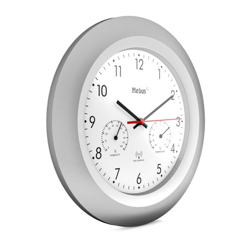 Mebus 19450, Digitaalne seinakell, Ümmargune, Hõbe, Valge, Plast, Modernne, Patarei