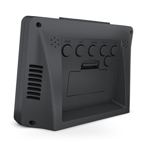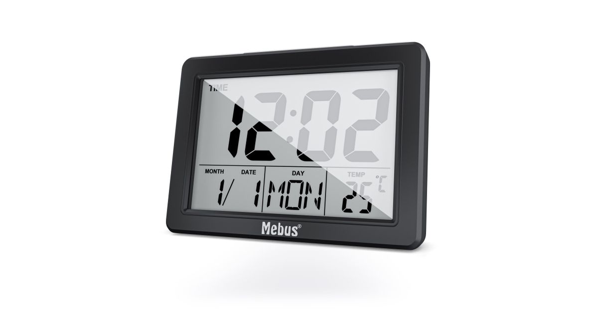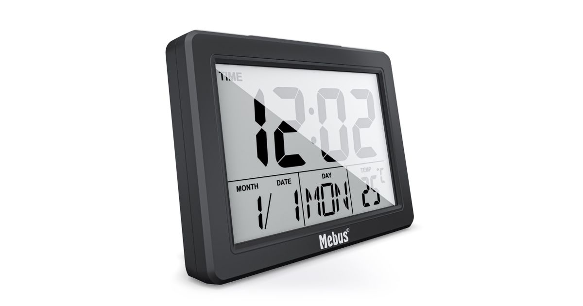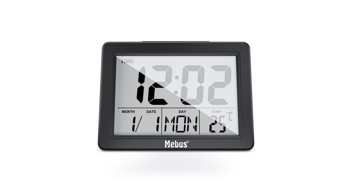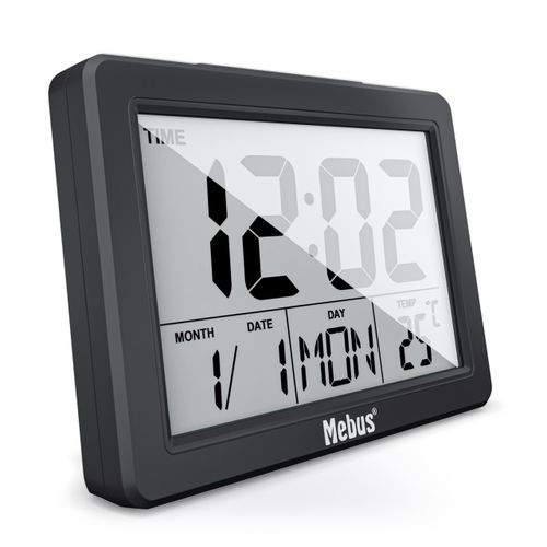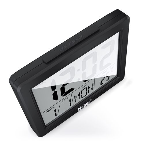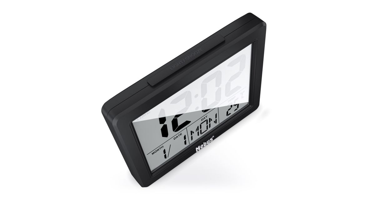 Mebus 25739, Kvarts äratuskell, Must, 12/24 h, F, °C, Sinine, Patarei
