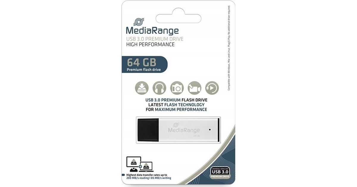 MediaRange MediaRange MR1901 USB-mälupulk 64 GB USB Type-A 3.0 must, hõbedane