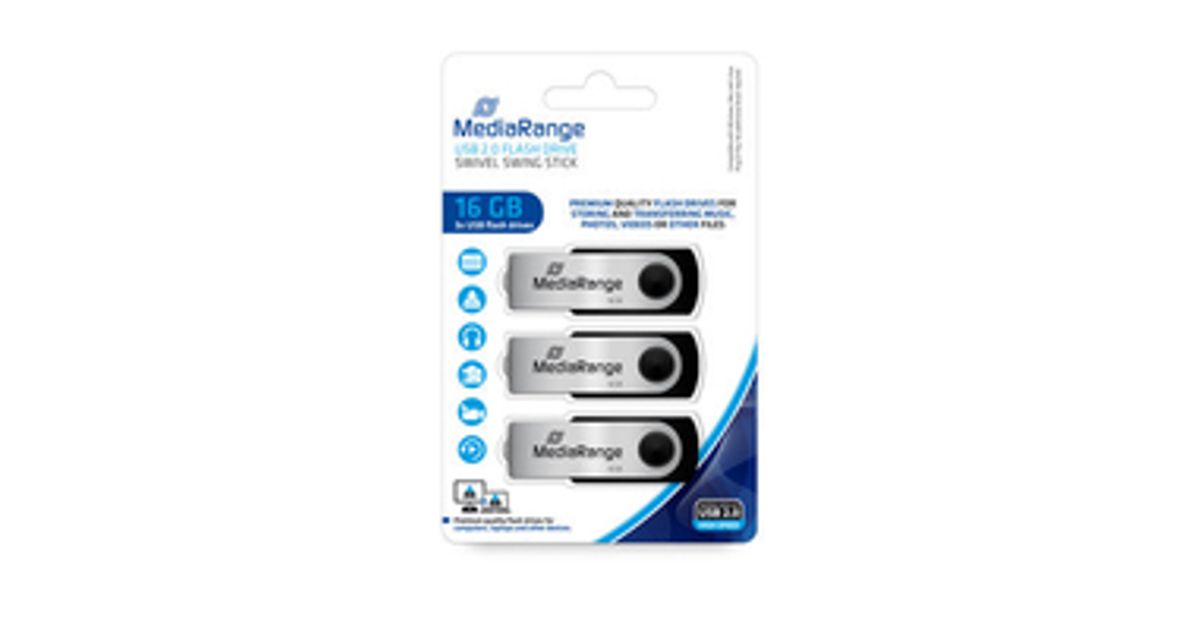 MediaRange MR910-3 USB-välkmälu 16 GB USB tüüp A 2.0 Must, Hõbe